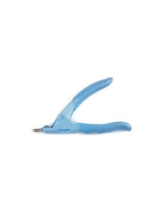 Gilotynka do sztucznych paznokci z gumową rączką, która zapobiega wysunięciu się z ręki.
