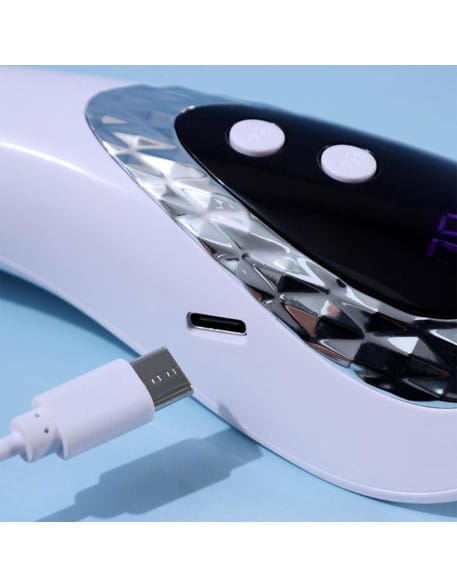 Przenośna, bezprzewodowa lampa z wyświetlaczem cyfrowym do szybkiego utwardzania lub "przymrażania" produktów światłoutwardzalnych w trakcie wykonywania stylizacji. Szczególnie przydatna w czasie pracy z formami dual form, aby zapewnić ich stabilizację do naturalnej płytki paznokcia lub do przytwierdzania większych ozdób do paznokci. Posiada dwa tryby timera: 60sek i 90sek.