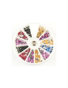 Ozdoby szklane na paznokcie. Karuzelka zawiera po 20szt ozdób z każdego koloru: czarne - 40szt, ciemno różowe - 40szt, różowe - 60szt, pomarańczowe - 60szt, niebieskie, fioletowe.